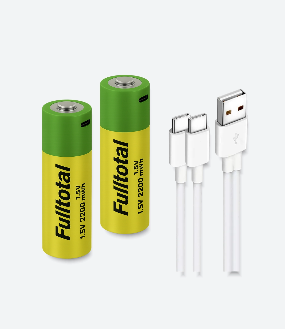 Pack 2 Pilas Recargables Fulltotal AA 2200mAH con Cable USB-C