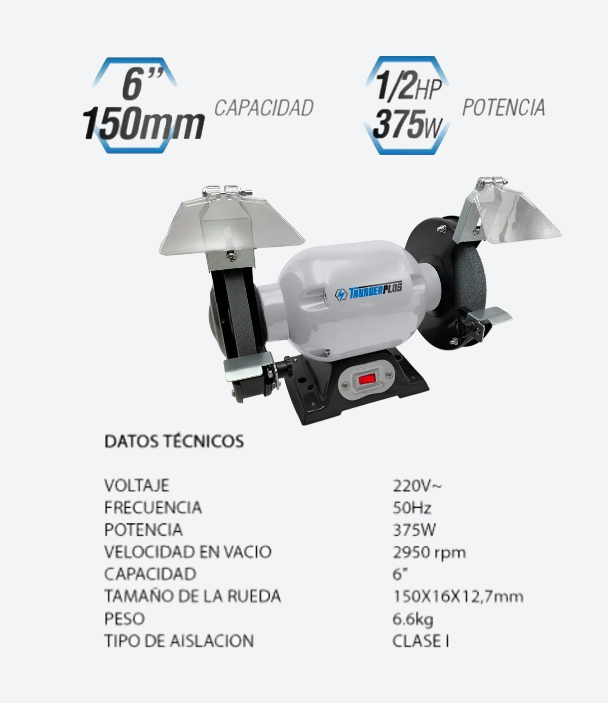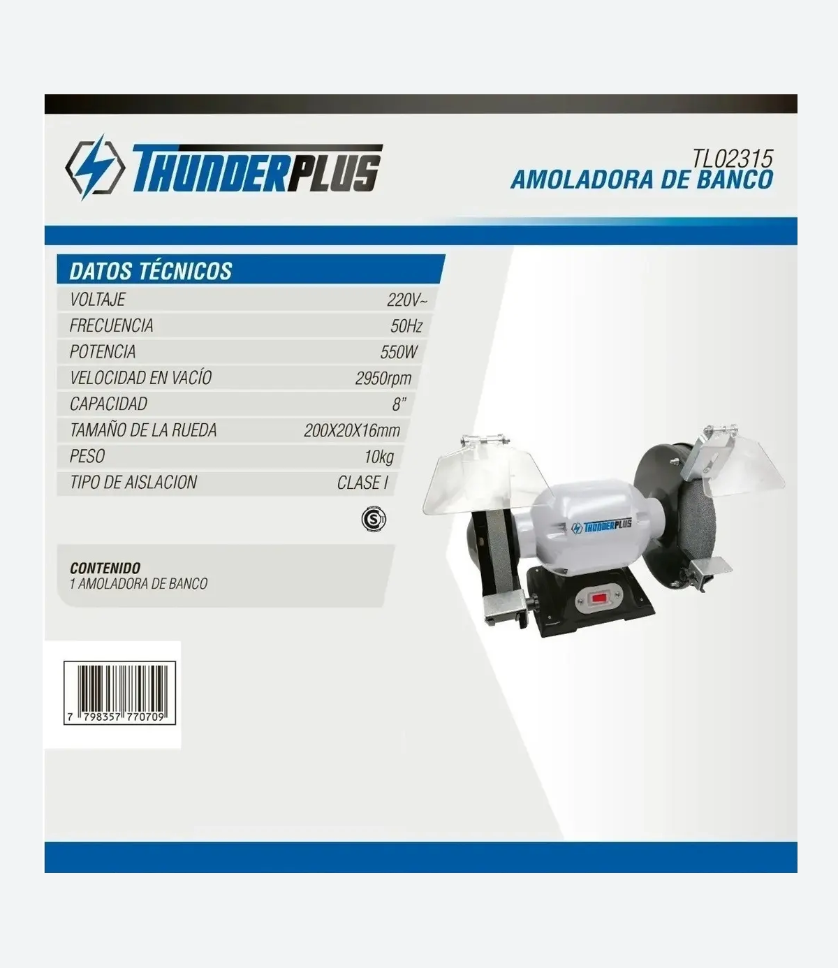 - Tipo: Amoladora de banco (fija, con dos piedras).