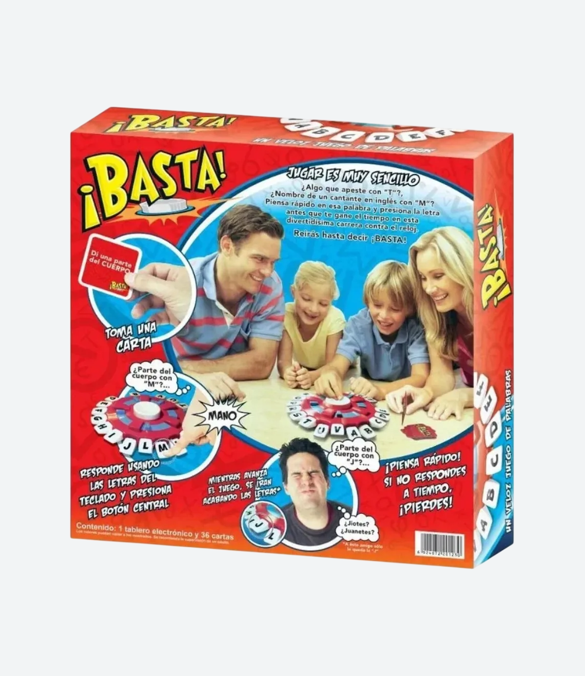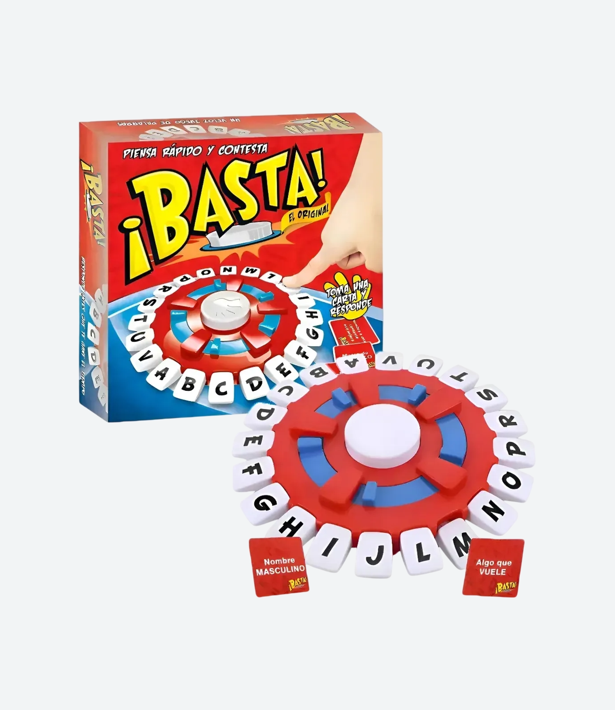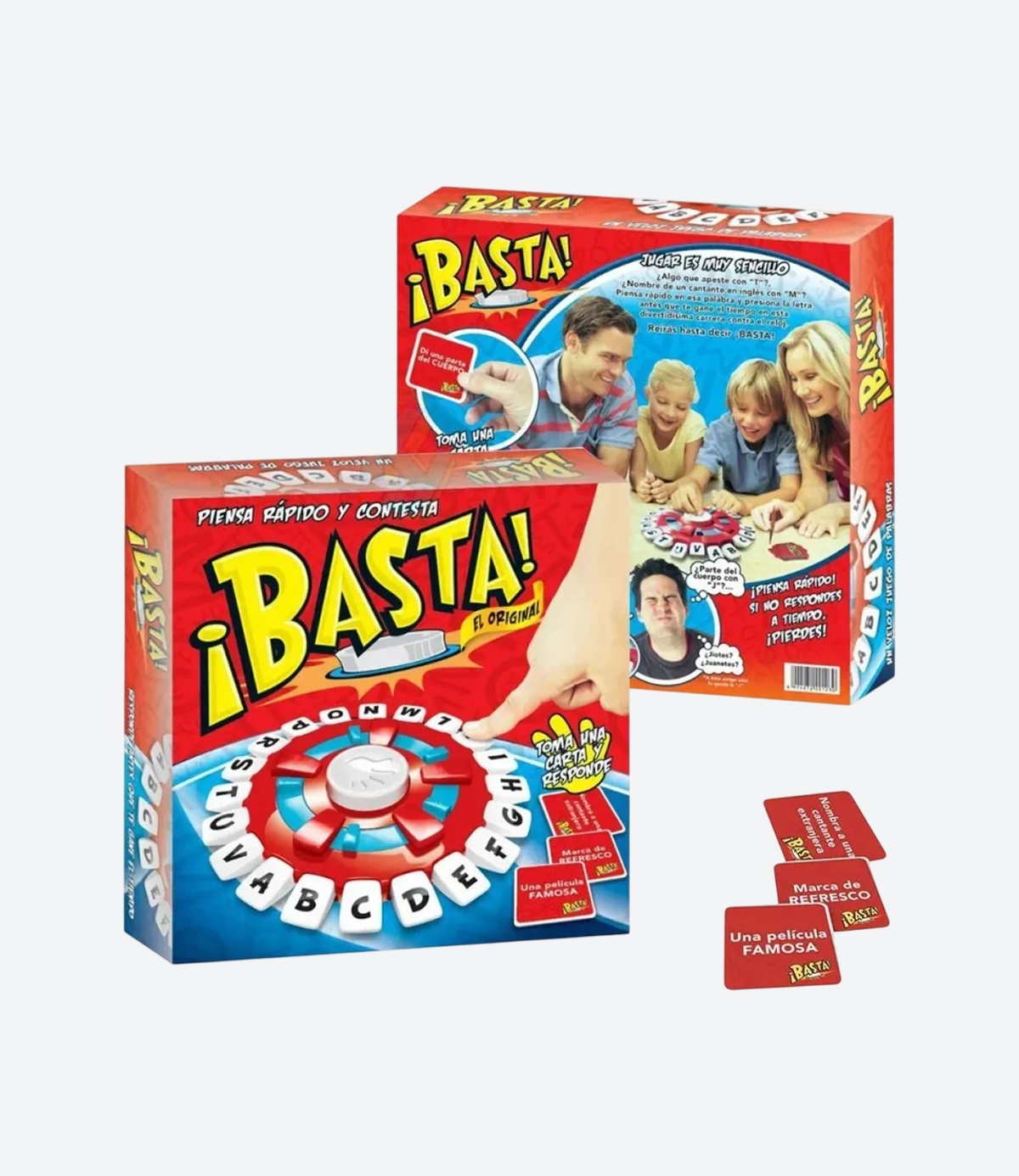 ¡Basta! Este juego de palabras de mesa mejora las habilidades lingüísticas y la rapidez de pensamiento, ya que los jugadores corren para encontrar la palabra correcta antes de que acabe el tiempo. Añade una emoción innovadora a las noches de juegos en familia y mejora tus habilidades cognitivas con este estimulante juego.