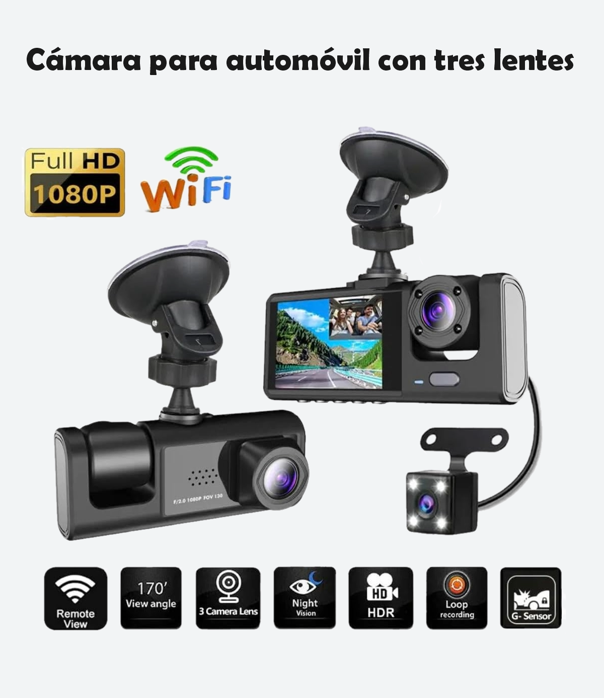 3 cámaras (frontal, interior y reversa)