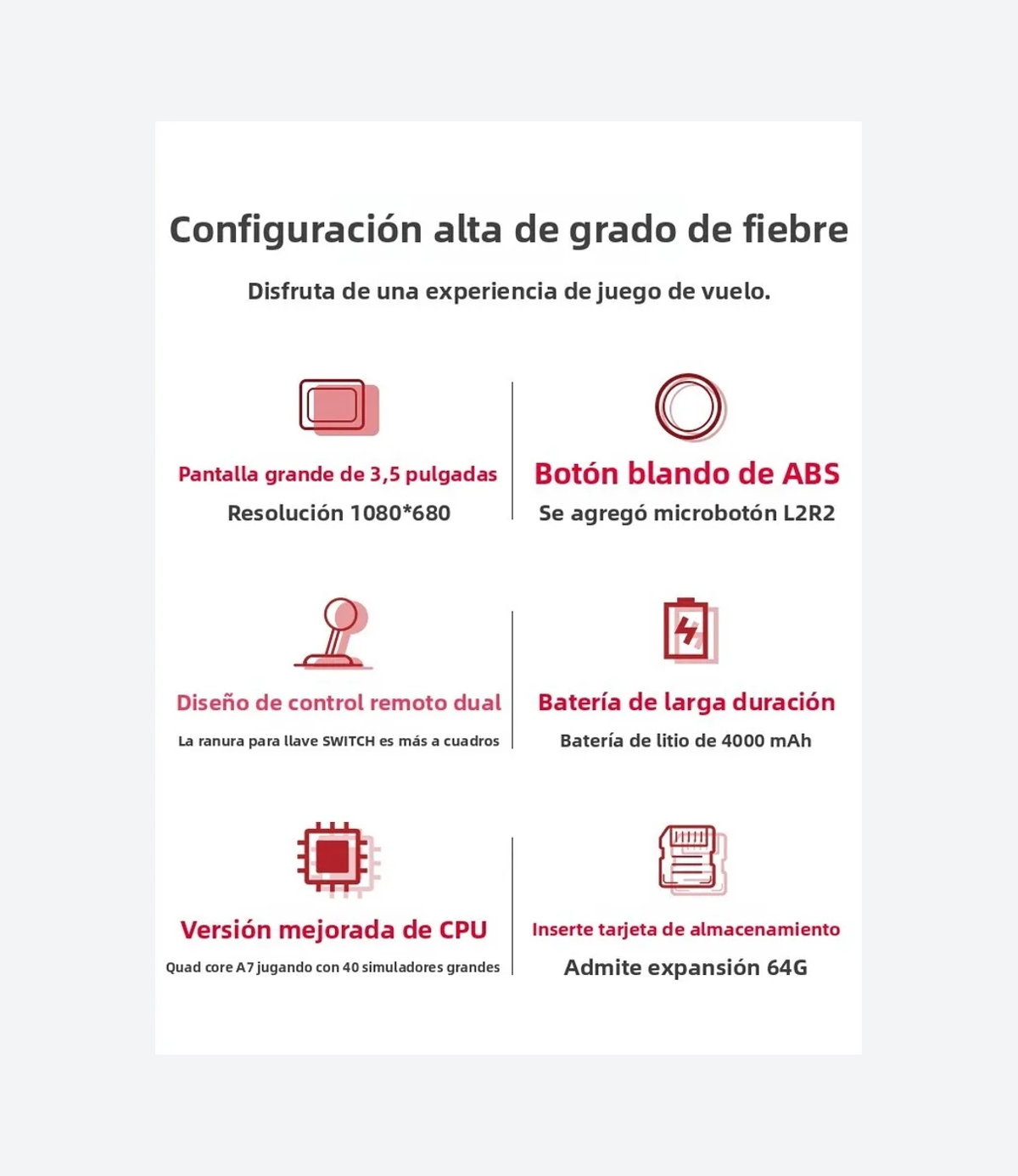 Tamaño portátil: con solo 20 x 6 x 10 cm y 250 g, la X7S es fácil de transportar, perfecto para jugar mientras viajas. Amplio espacio de almacenamiento: con 32 GB de memoria, almacena innumerables juegos y medios, lo que lo convierte en un dispositivo versátil para el entretenimiento.