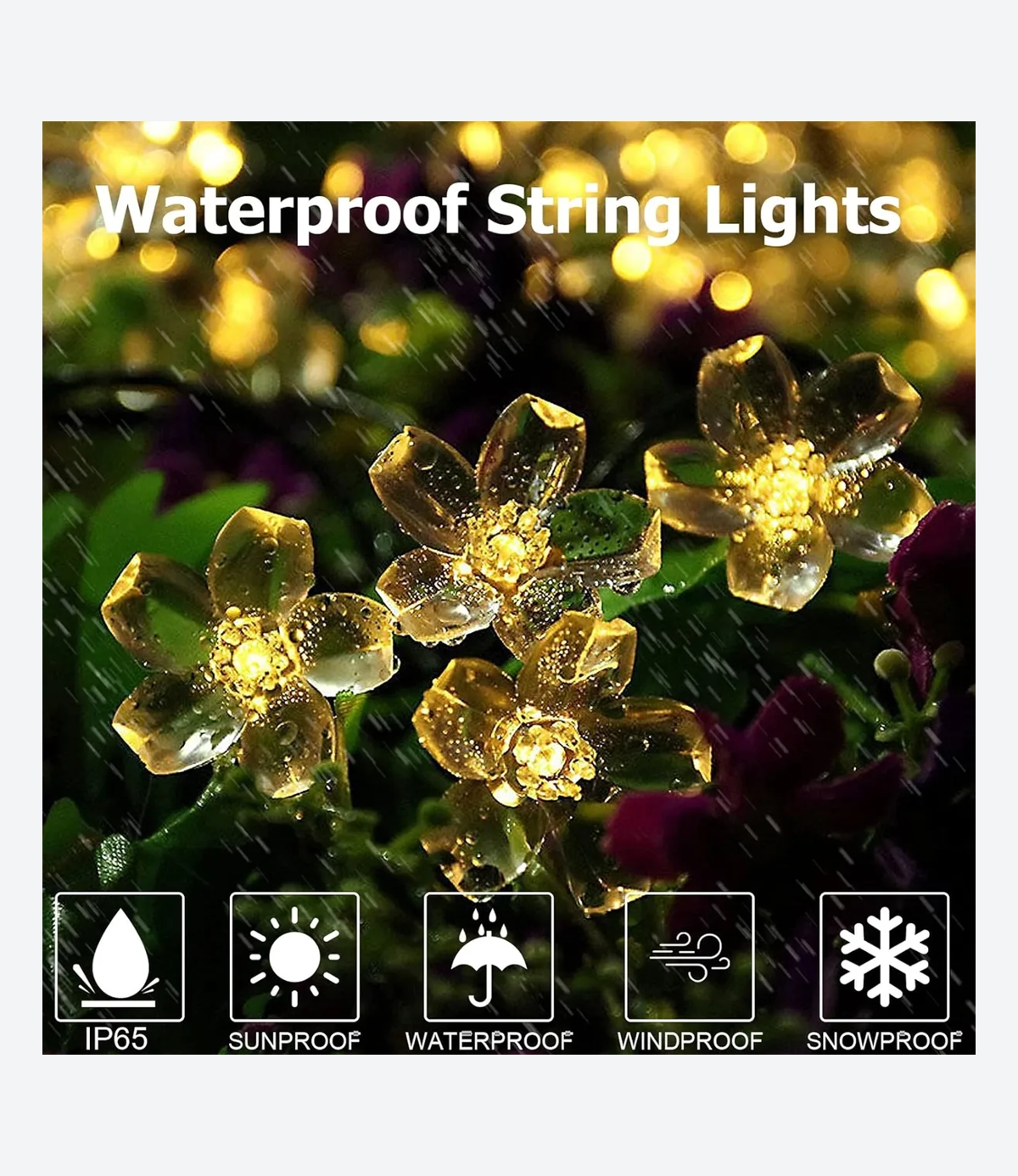Resistente al agua IP65: la función impermeable IP65 puede hacer que tus luces solares sean ampliamente utilizadas al aire libre, decorar tu balcón, porche, patio trasero, jardín con él y crear un ambiente romántico.