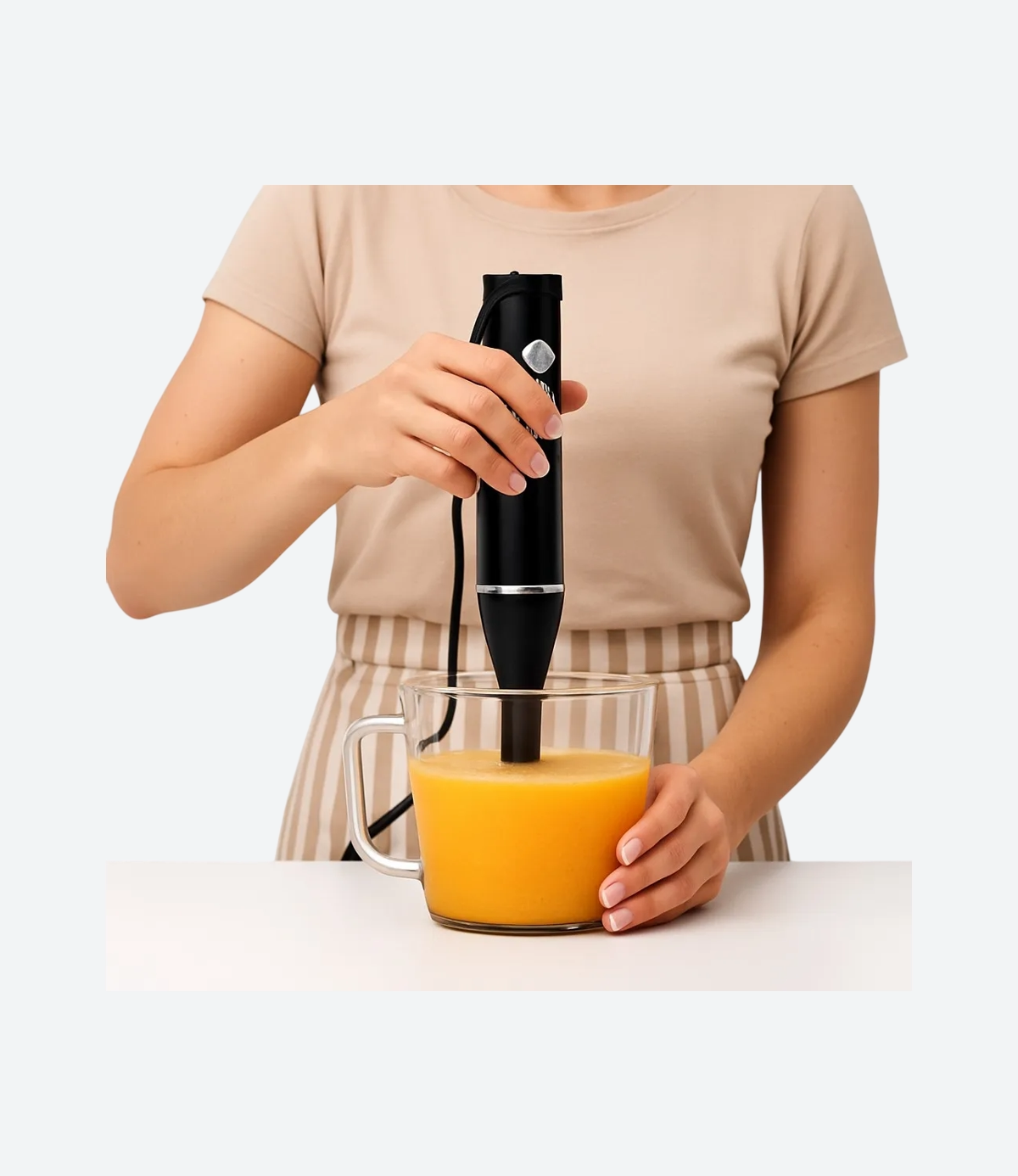 Licuadora de mano: ideal para sopas, cremas, jugos y batidos.