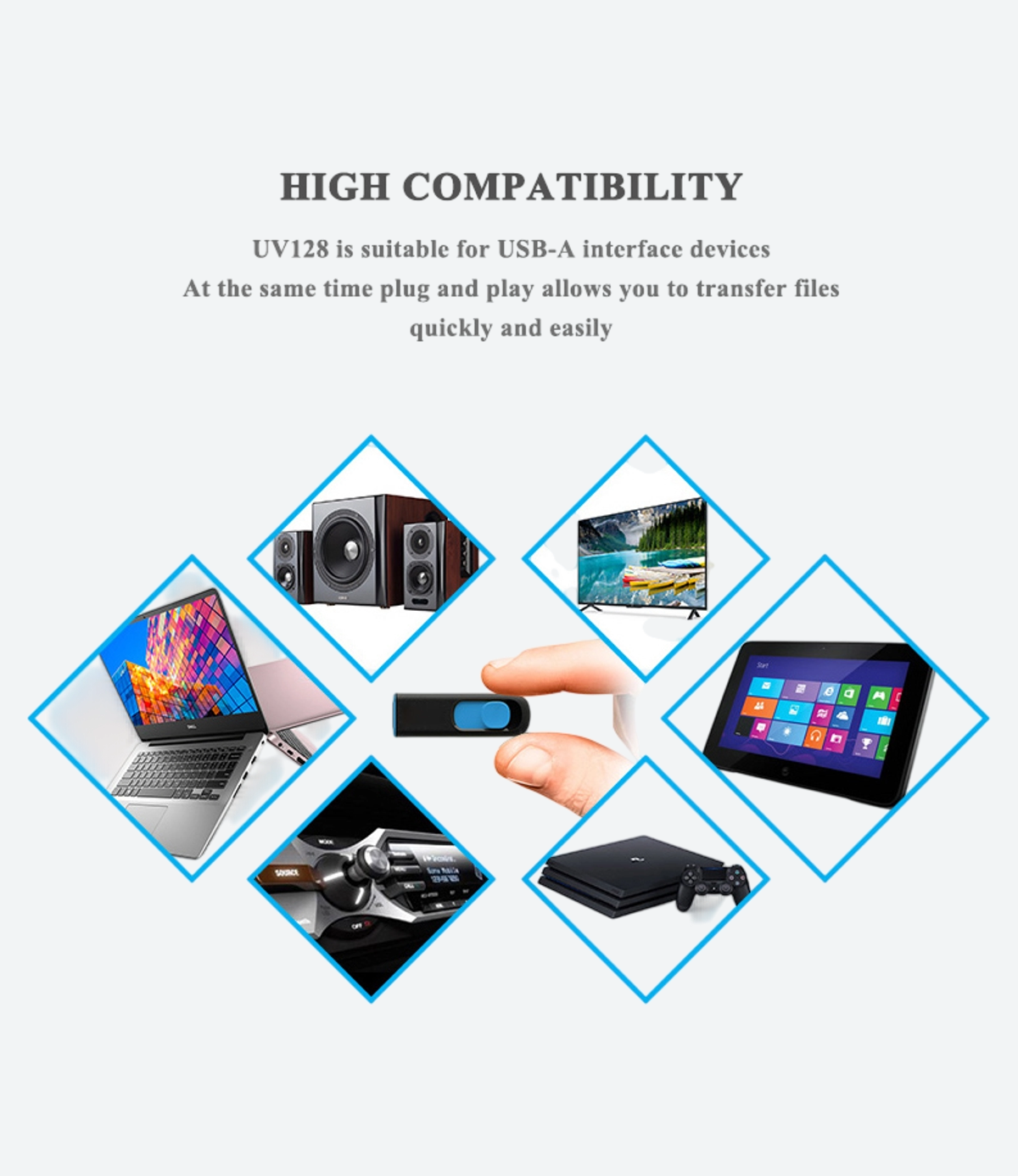 Estos pendrives te permitirán almacenar desde 32 GB hasta 128GB para que puedas guardar gran cantidad de información, imágenes u otros tipos de archivos.