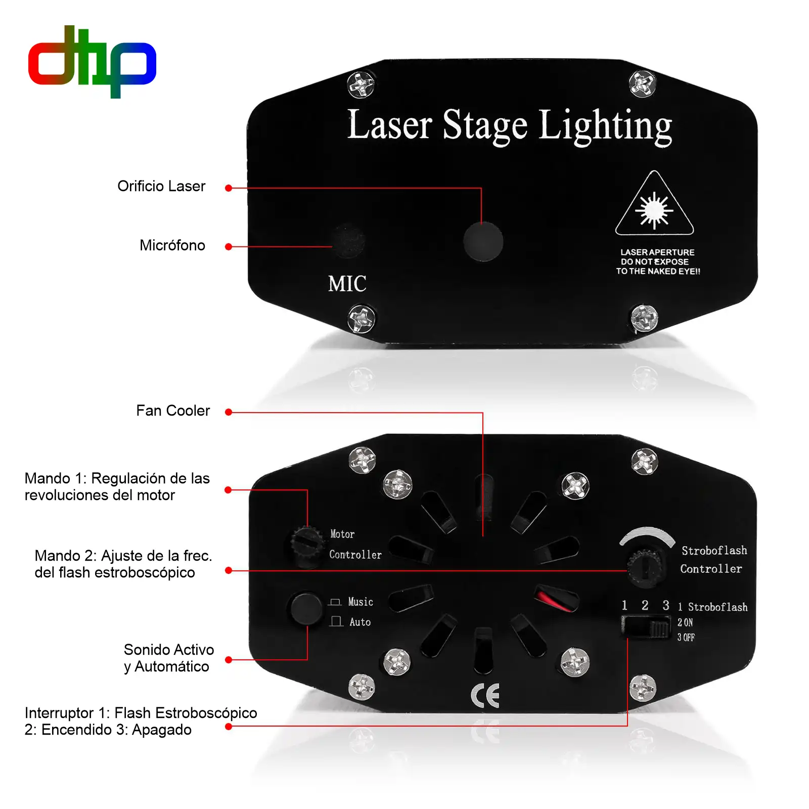 – Reproducción automática: los patrones se mueven automáticamente y cambian el color del láser;