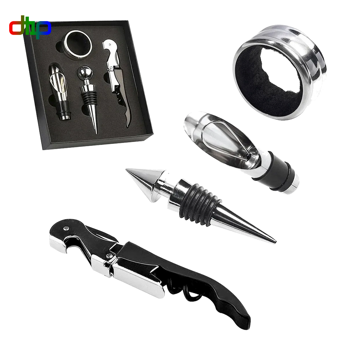 Set De Vino 4 Piezas Destapador En Caja De Carton Rigido