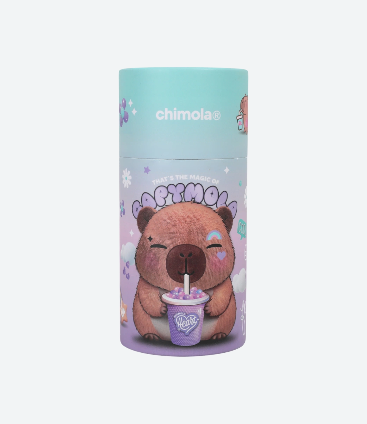 -Estuche: Cilíndrico rígido con diseño full color y logo Chimola impreso.