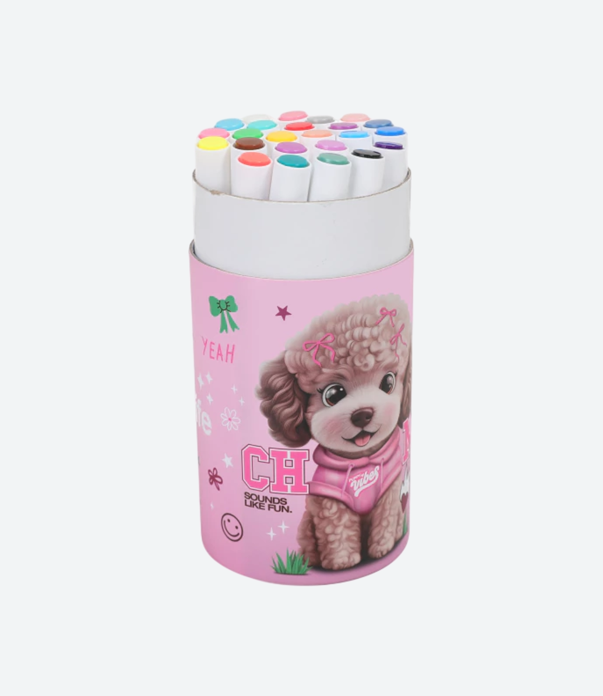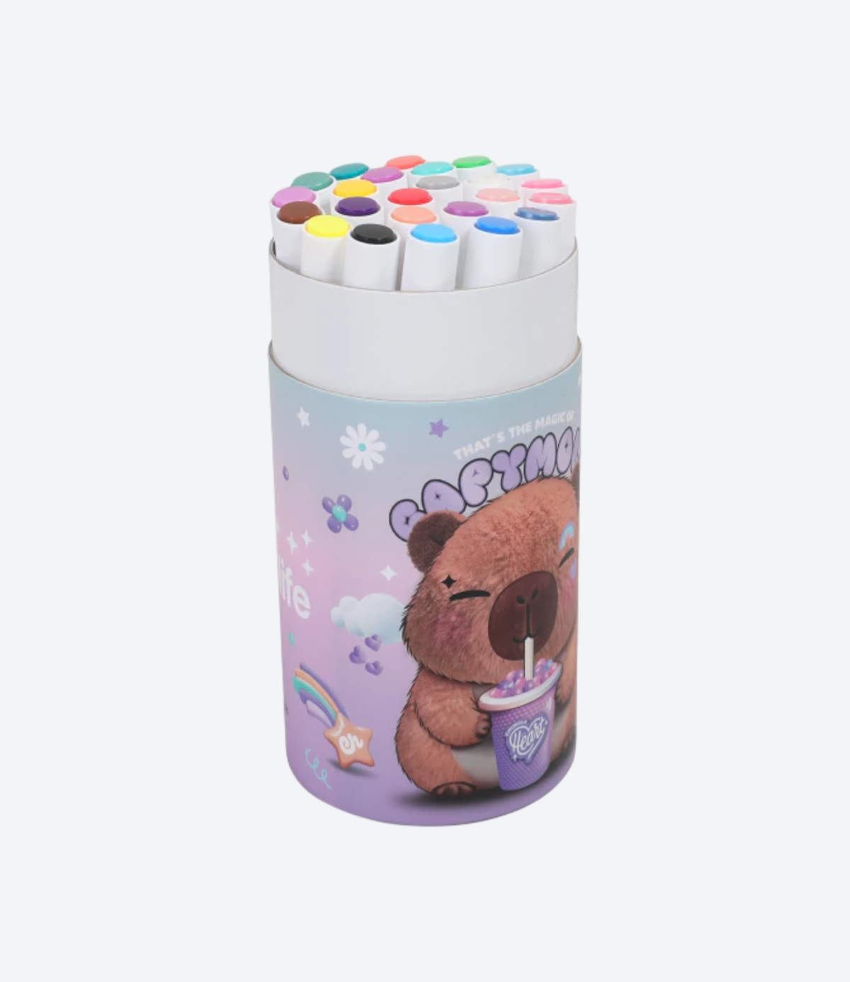 Dejá volar tu imaginación con los colores mágicos. Este set de 24 marcadores acrílicos Chimola viene en un práctico estuche cilíndrico rígido, impreso a full color con tus personajes favoritos. Cada marcador tiene punta redonda y tinta acrílica de alta calidad, de secado rápido, resistente y opaca, ideal para escribir, decorar o dibujar sobre papel, cartulina y superficies lisas. Con diversos modelos para elegir.