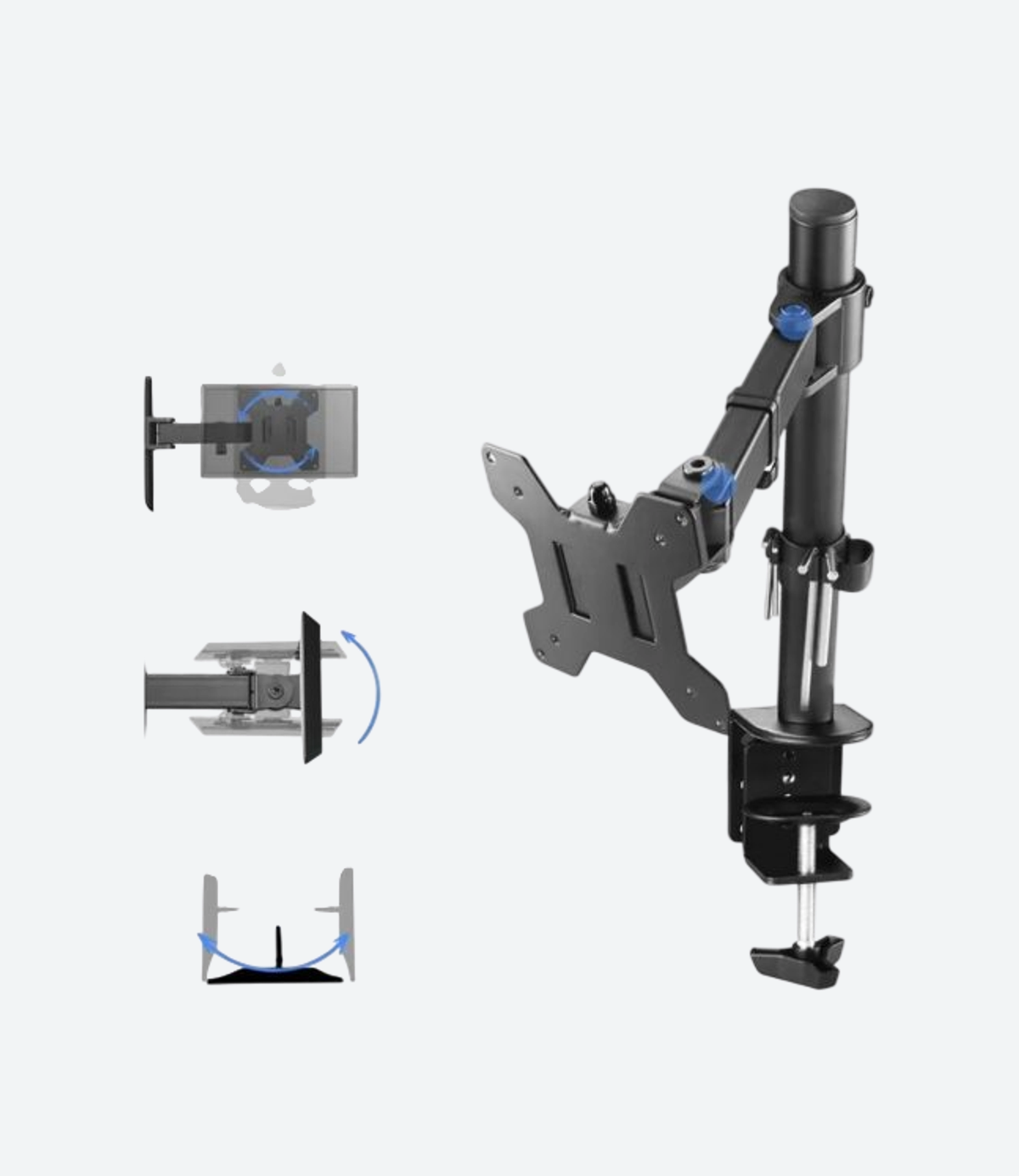 El Soporte De Mesa Para Monitor es una solución ideal para optimizar tu espacio de trabajo o gaming. Este soporte es compatible con pantallas LED de entre 10″ y 30″, permitiendo un peso máximo de 10 kg. Su diseño articulado y giratorio de 360º junto con una inclinación de 90º te ofrece la flexibilidad necesaria para ajustar la pantalla a tu comodidad.
