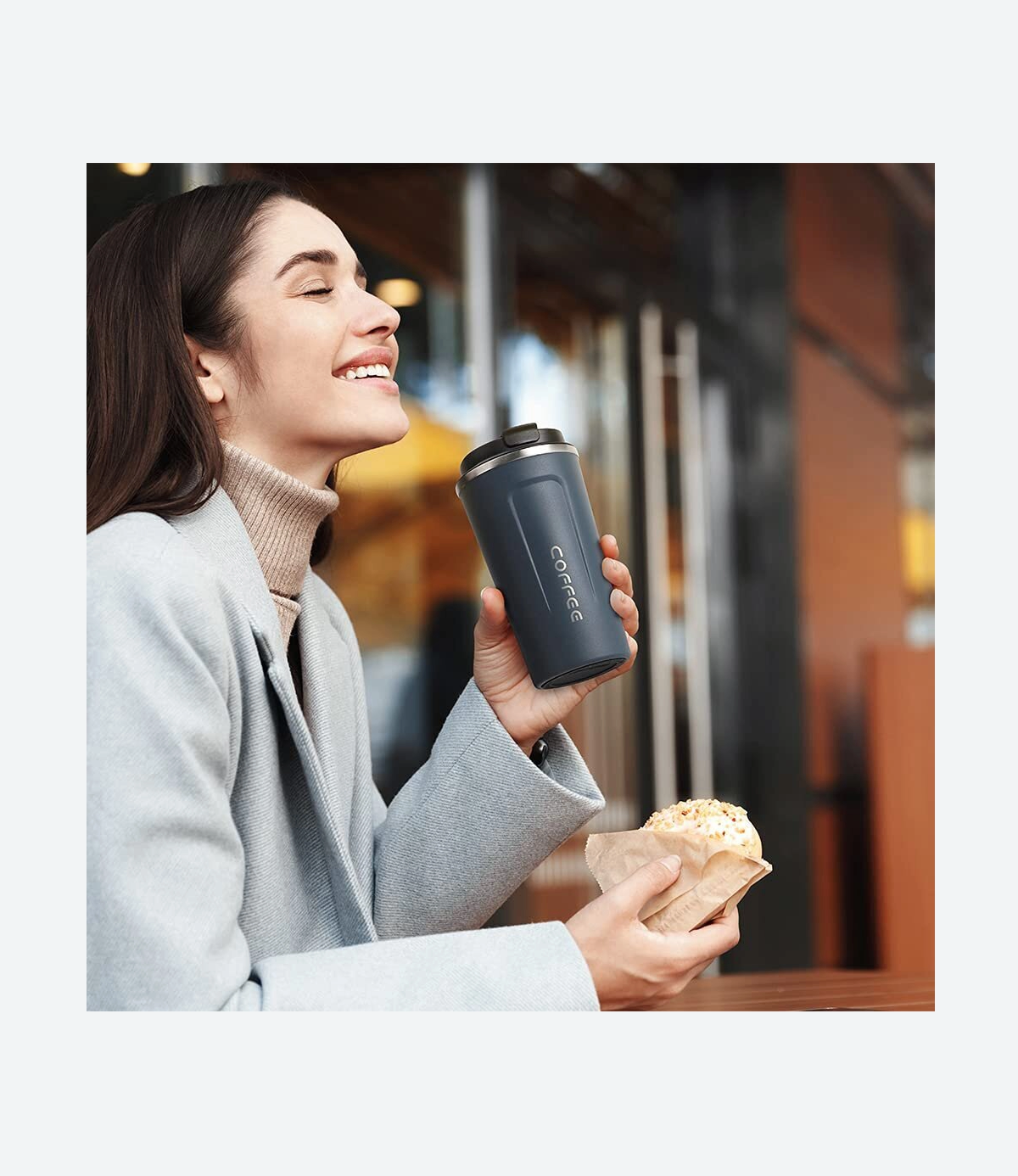Con aislamiento al vacío de doble pared de acero inoxidable y a prueba de fugas, esta taza de café es adecuada para la oficina, conducir, andar en bicicleta, viajar, etc.